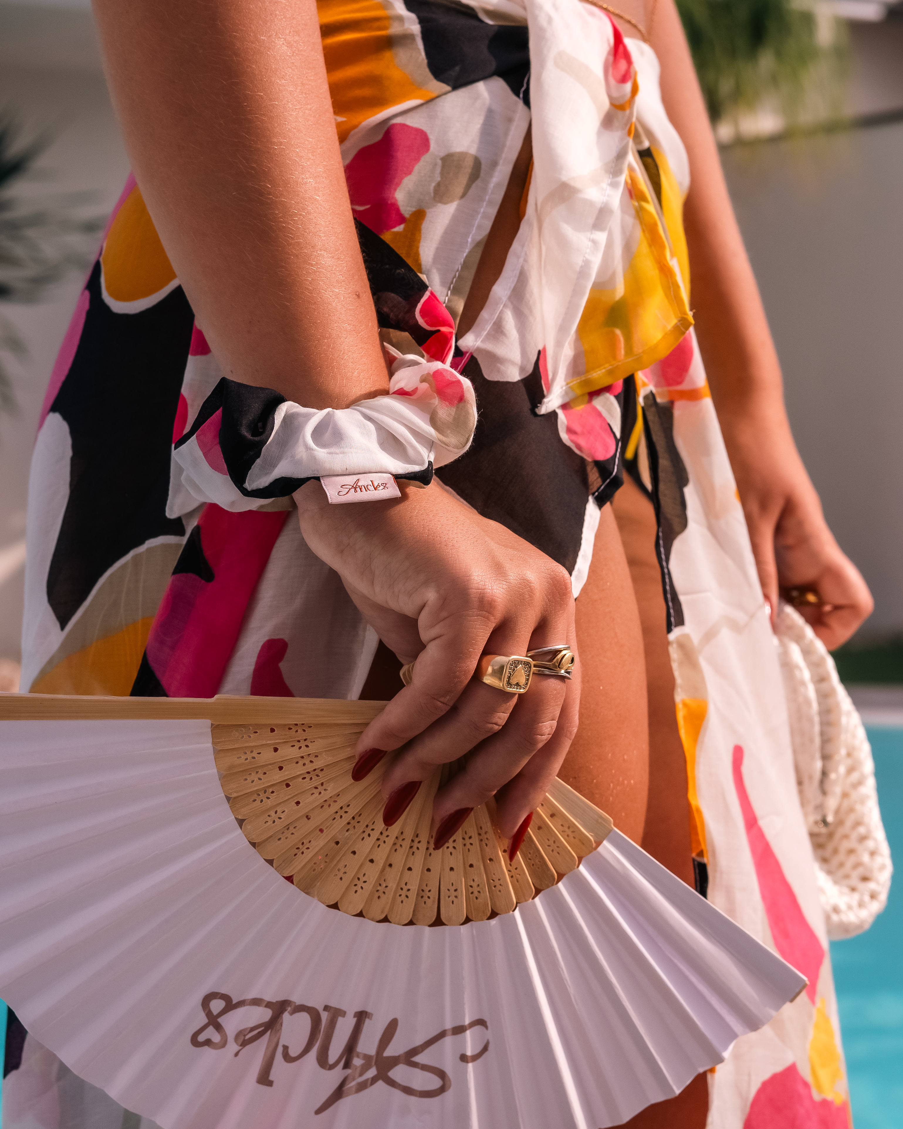 Quel nodo è diventato qualcosa di concreto: un pareo che avvolge, uno scrunchie che raccoglie pensieri e capelli, è diventato Anclé. Un brand, ma prima di tutto